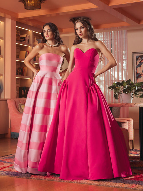 Prom 2026 is all about having fun with your look. Lean in to fun prints, bold patterns, and eye-catching details that are sure to steal the show. Think bold stripes, flirty drop waist silhouettes, dramatic bows, 3D appliqués, and allover florals. It’s the little details that make the look.