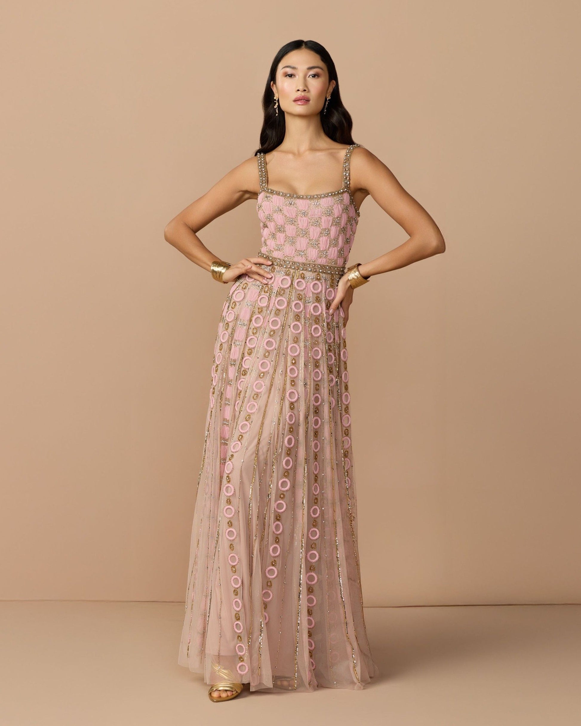 Pink Sleeveless Embellished A-line Gown