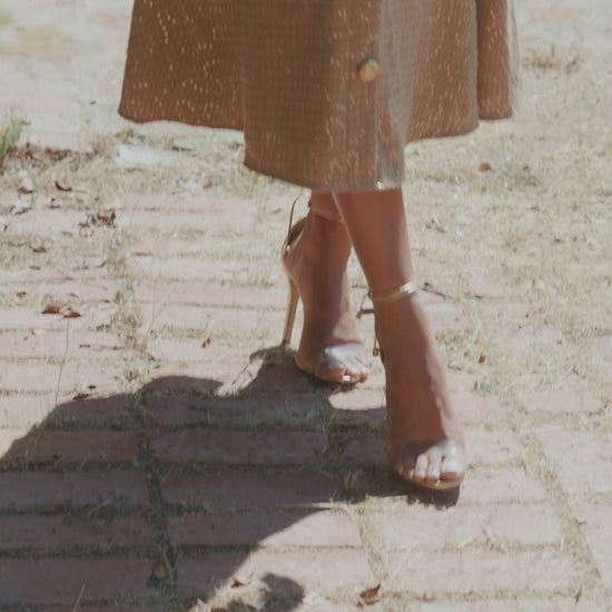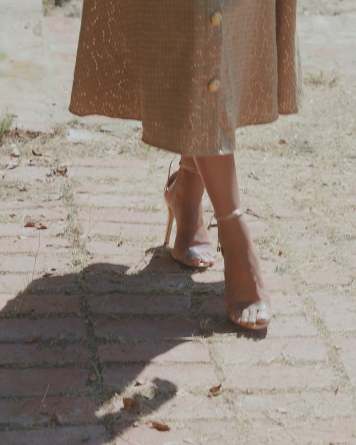 Gold Boucle Cap Sleeve High Neck Button Up Midi Dress
