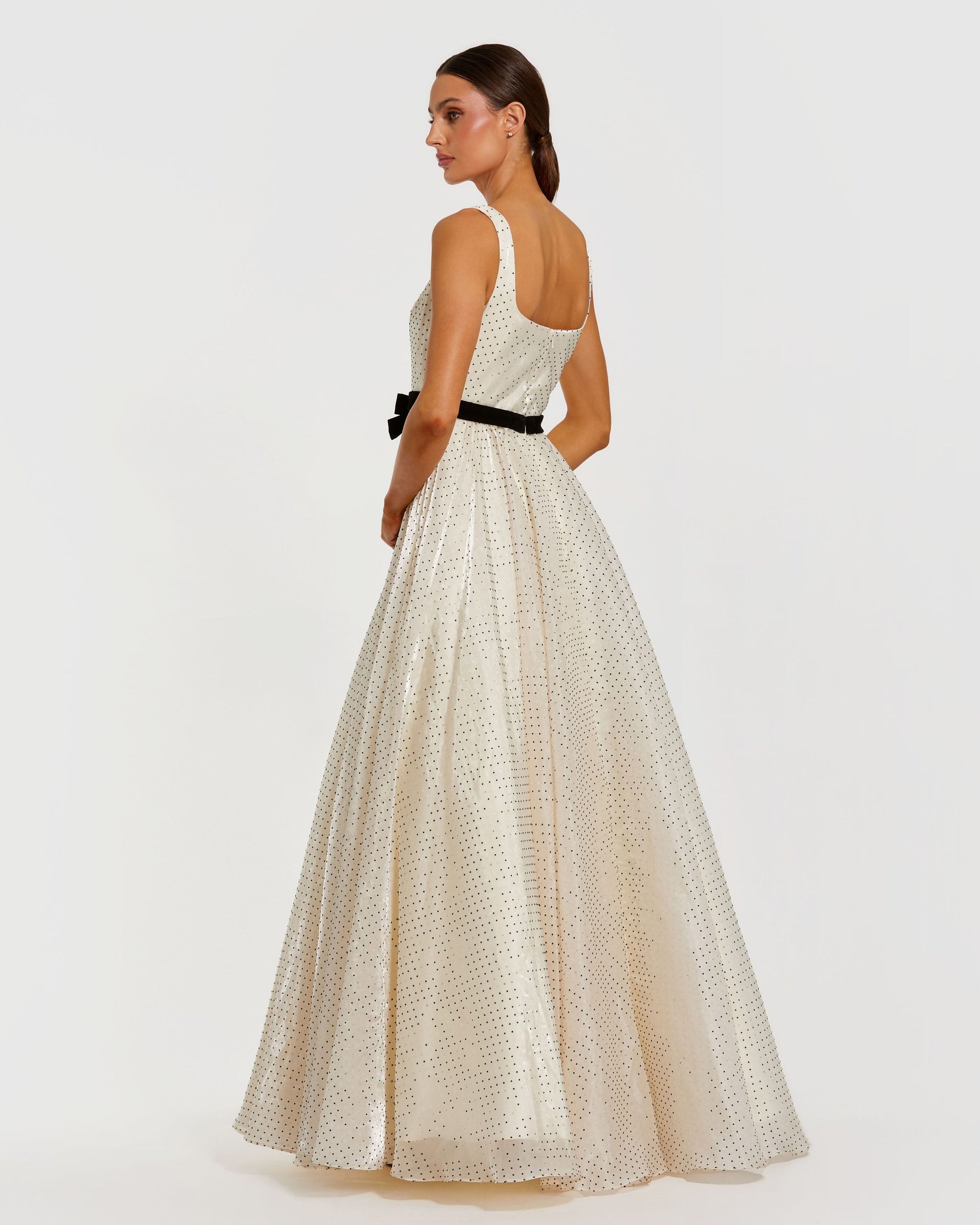 Ivory Polka Dot Square Neck Ball Gown with Bow