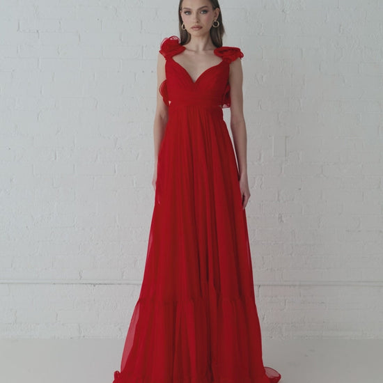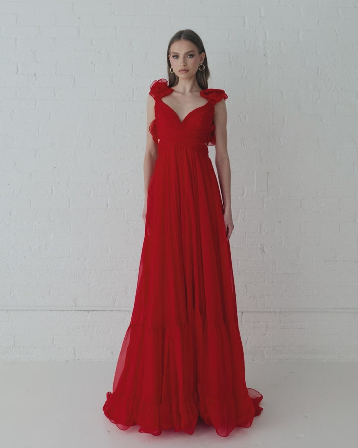 Red Ruffle Tiered Cut-Out Chiffon Gown - FINAL SALE