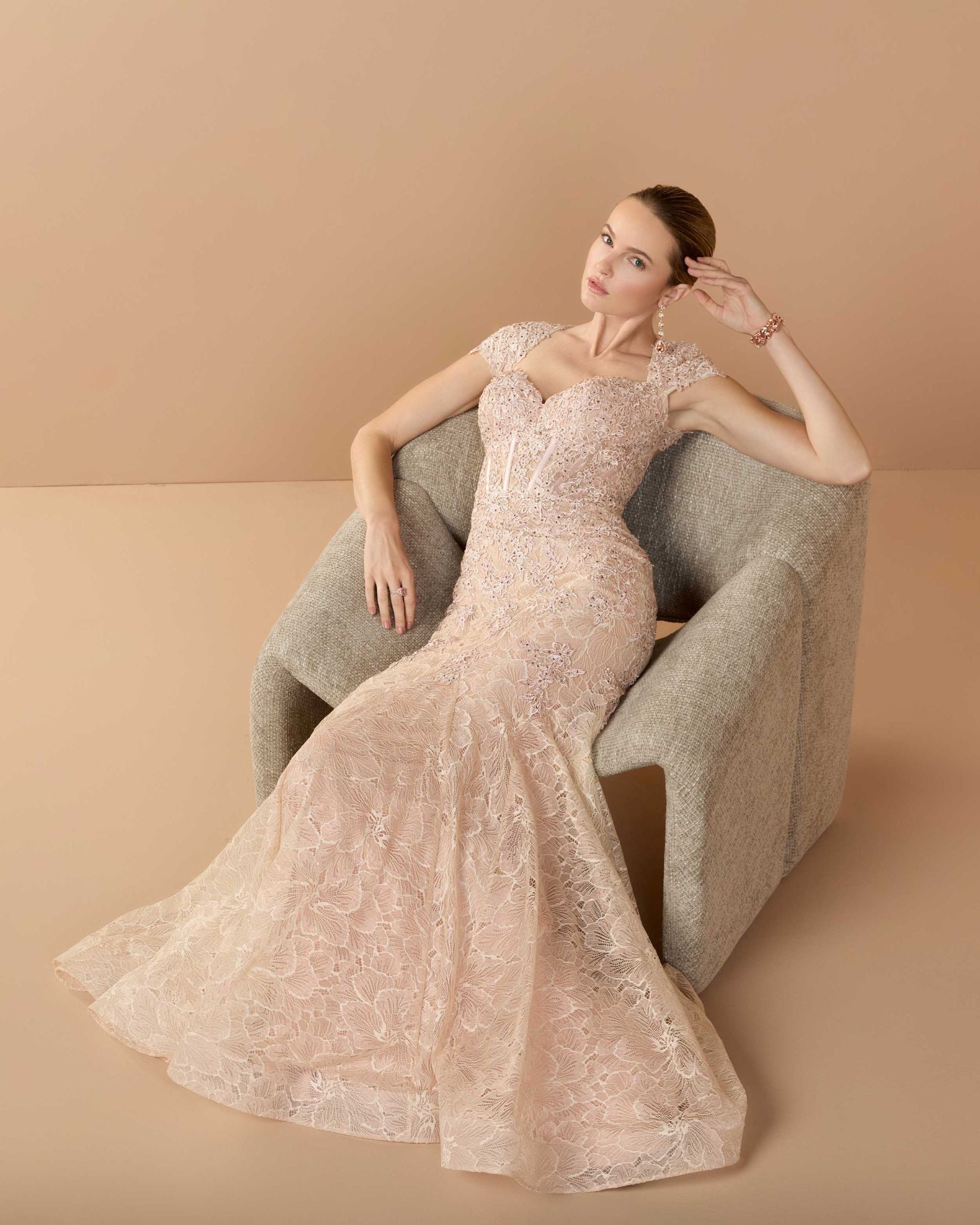 Light Pink Lace Sweetheart Embellished Mermaid Gown