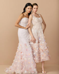 - Partially lined bodice; fully lined skirt; sheer unlined sleeves