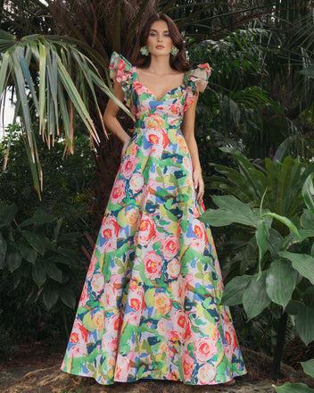 - Sculpted 3D flower detailing along bodice