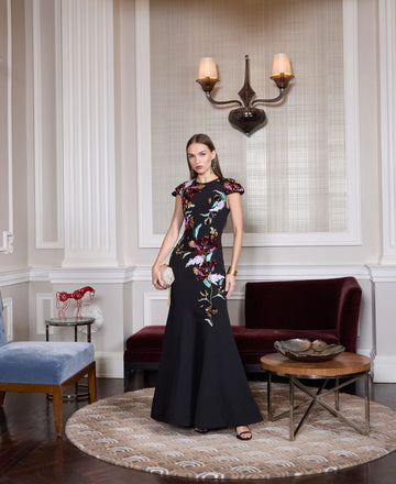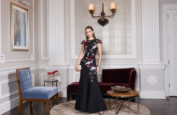 - Partially lined bodice; fully lined skirt; semi-sheer unlined sleeves