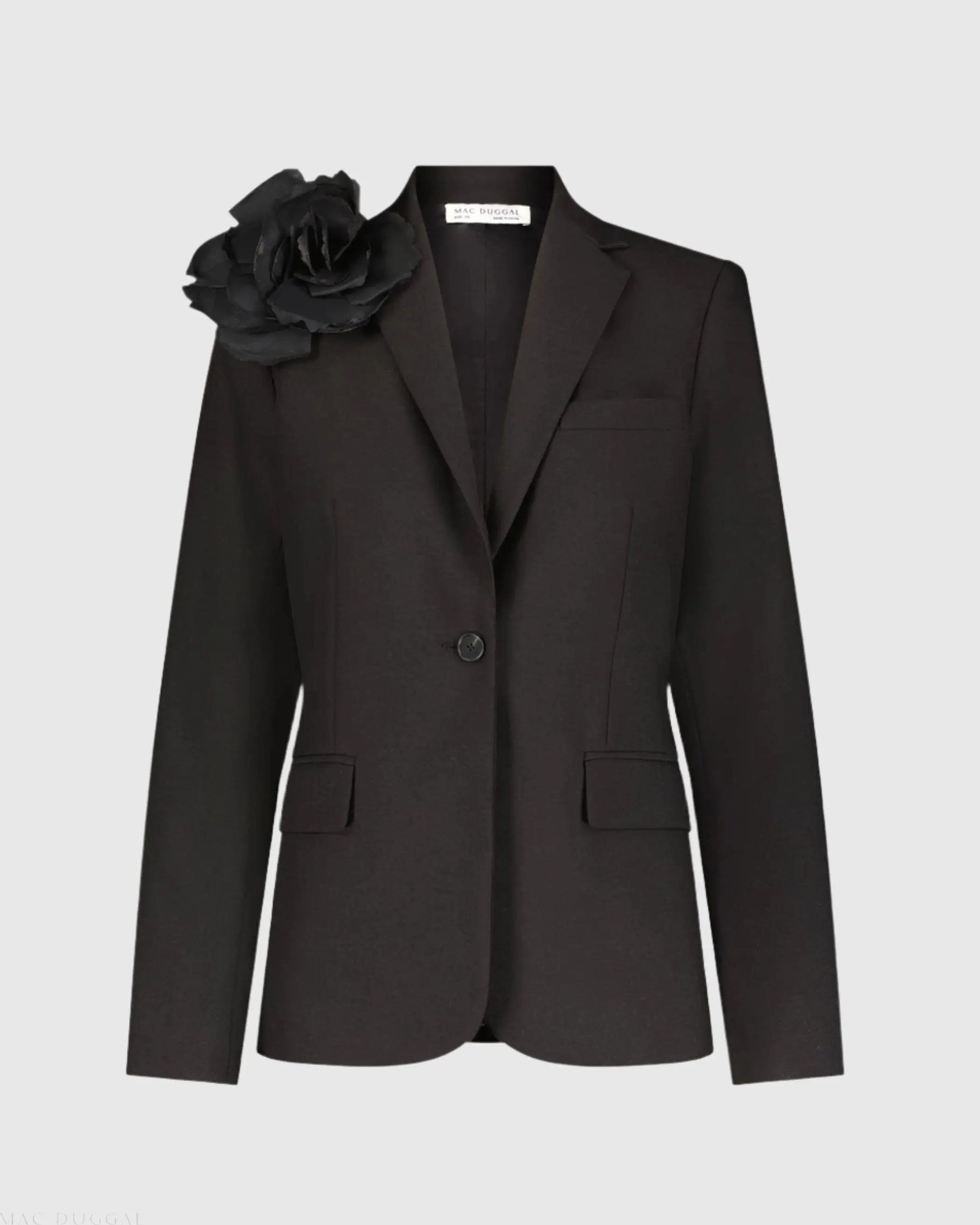 Black Classic Crepe Blazer Jacket With Flower - FINAL SALE
