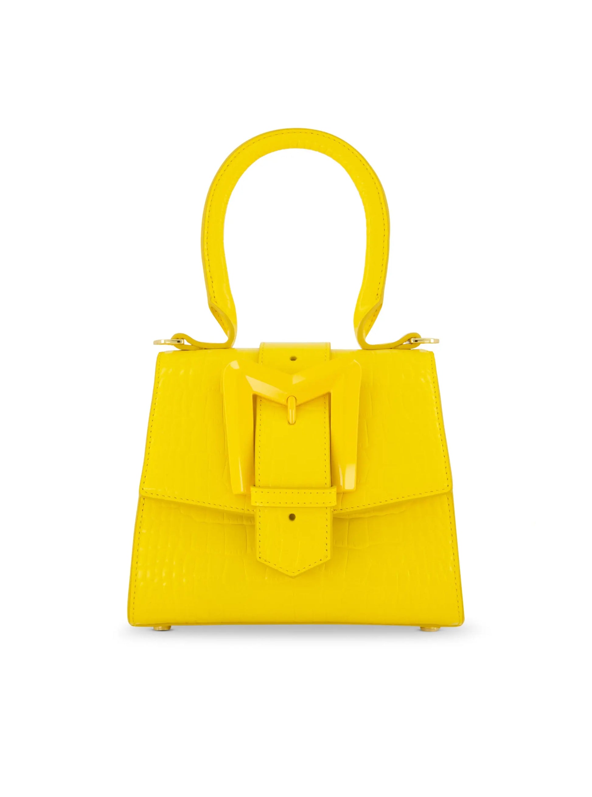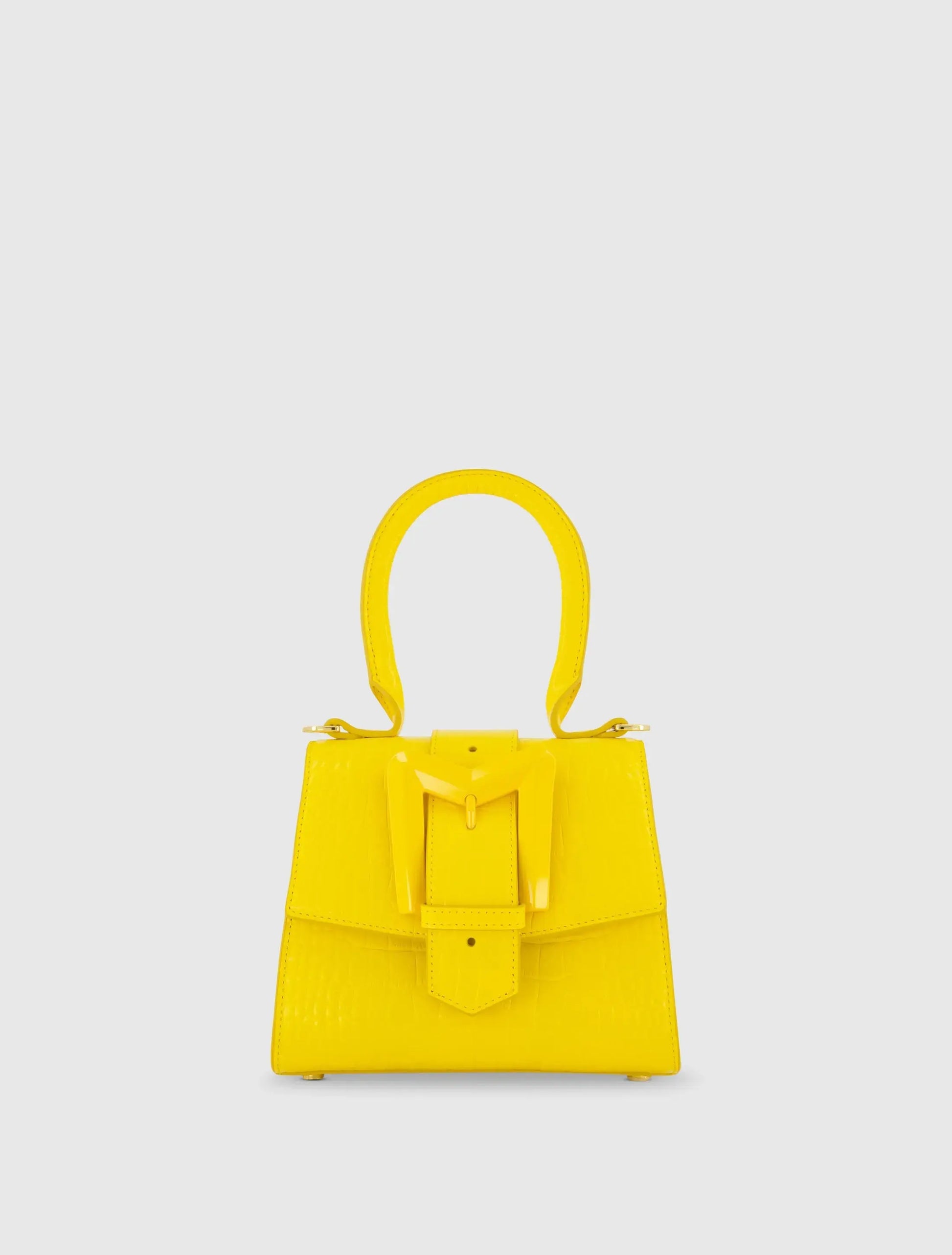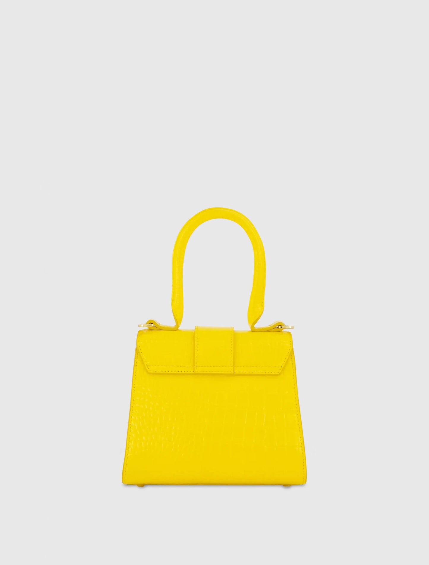 Yellow Buckled Mini Croco Leather Handbag with Detachable Strap - FINAL SALE