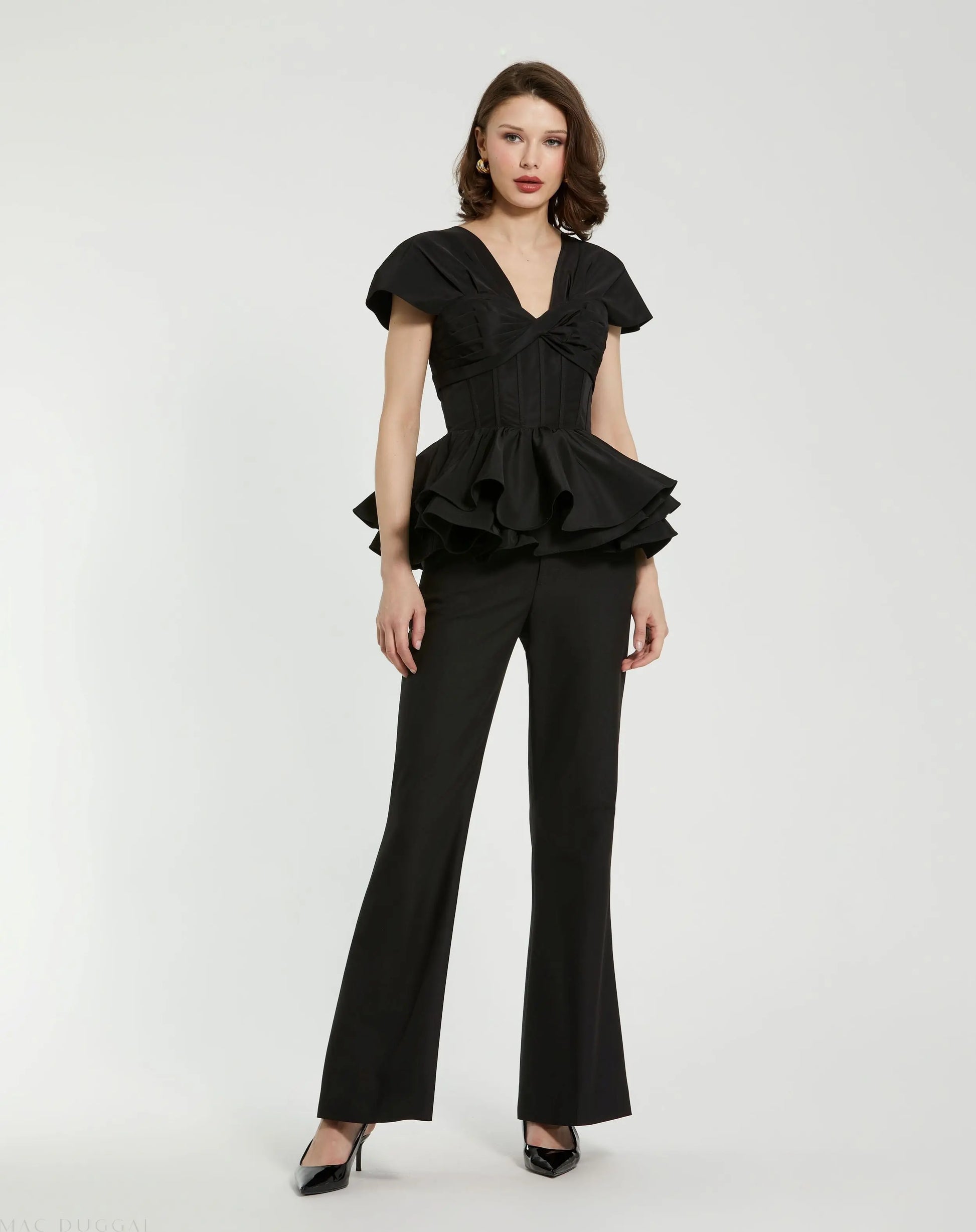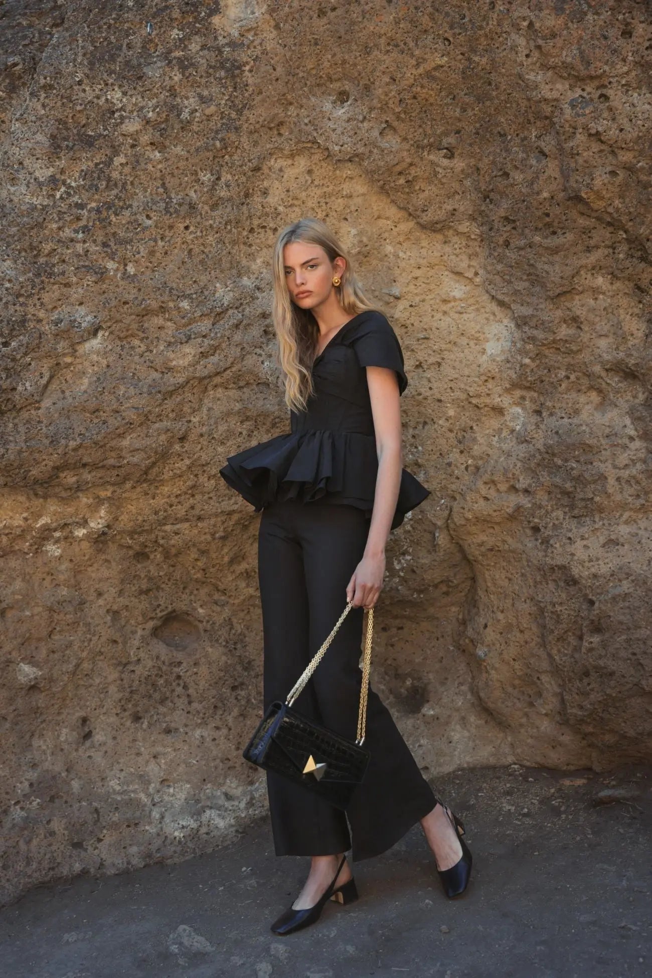 Introducing our Faille Twist Bustier Peplum Top, a blend of contemporary flair and timeless sophistication. This top features a twist detail at the bust and a flattering peplum silhouette, crafted from luxurious faille fabric.